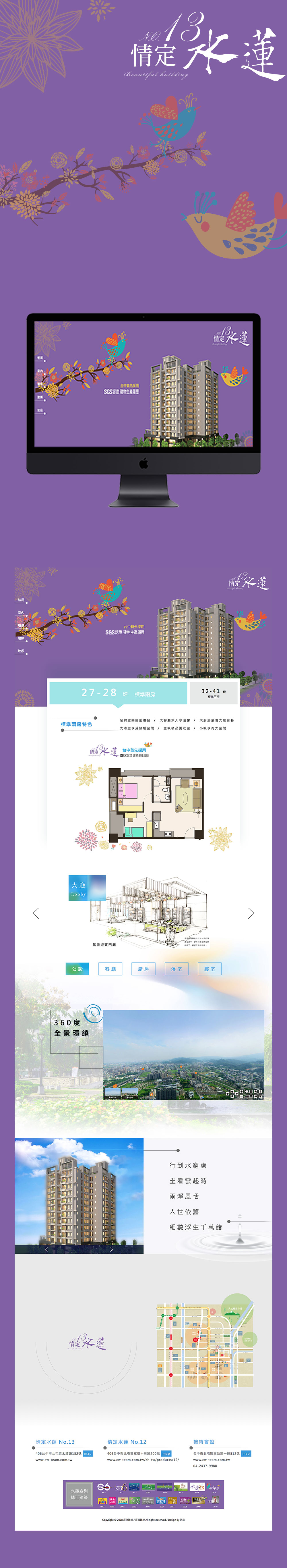情定水蓮13期打造一個適合您全家居住的環境,網站風格運用了鳥與花草環繞著13期建案。 讓人彷彿身歷其境感受著環境的舒適。