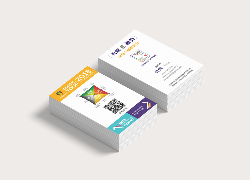 整體視覺偏向高檔沈穩,營造出高規格感,利用客戶本身自有的黃、紫色,去點綴搭配,打破原先框架,在視覺我們把玩了一些創意,將客戶本身logo的四區塊色調,分別拆解後,放置在上下左右四個方位,提高logo辨識度及周邊商品應用好感度。